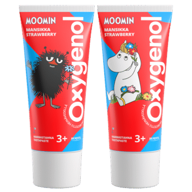 Oxygenol Moomin Mansikkahammastahna sopii erityisesti pienten lasten maitohampaiden puhdistukseen. Tämä hellävarainen muumi lastenhammastahna sisältää fluoria (1000 ppm), joka vahvistaa hampaita ja vähentää reikiintymisen riskiä. Lisäksi tahnassa on 10 % kotimaista ksylitolia, joka auttaa ehkäisemään plakin muodostumista ja tukee suun terveyttä.